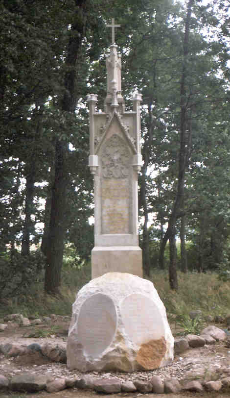 The second phase called for the placement of a stone with two flat surfaces in front of the memorial. The original German script was translated into English (left side) and Polish (right side) inscribed on the two flat surfaces so that visitors to this holy place would be aware of the sacrifices made by those early Schwenkfelders. The stone carving was completed and placed at the site in the spring of 2002.